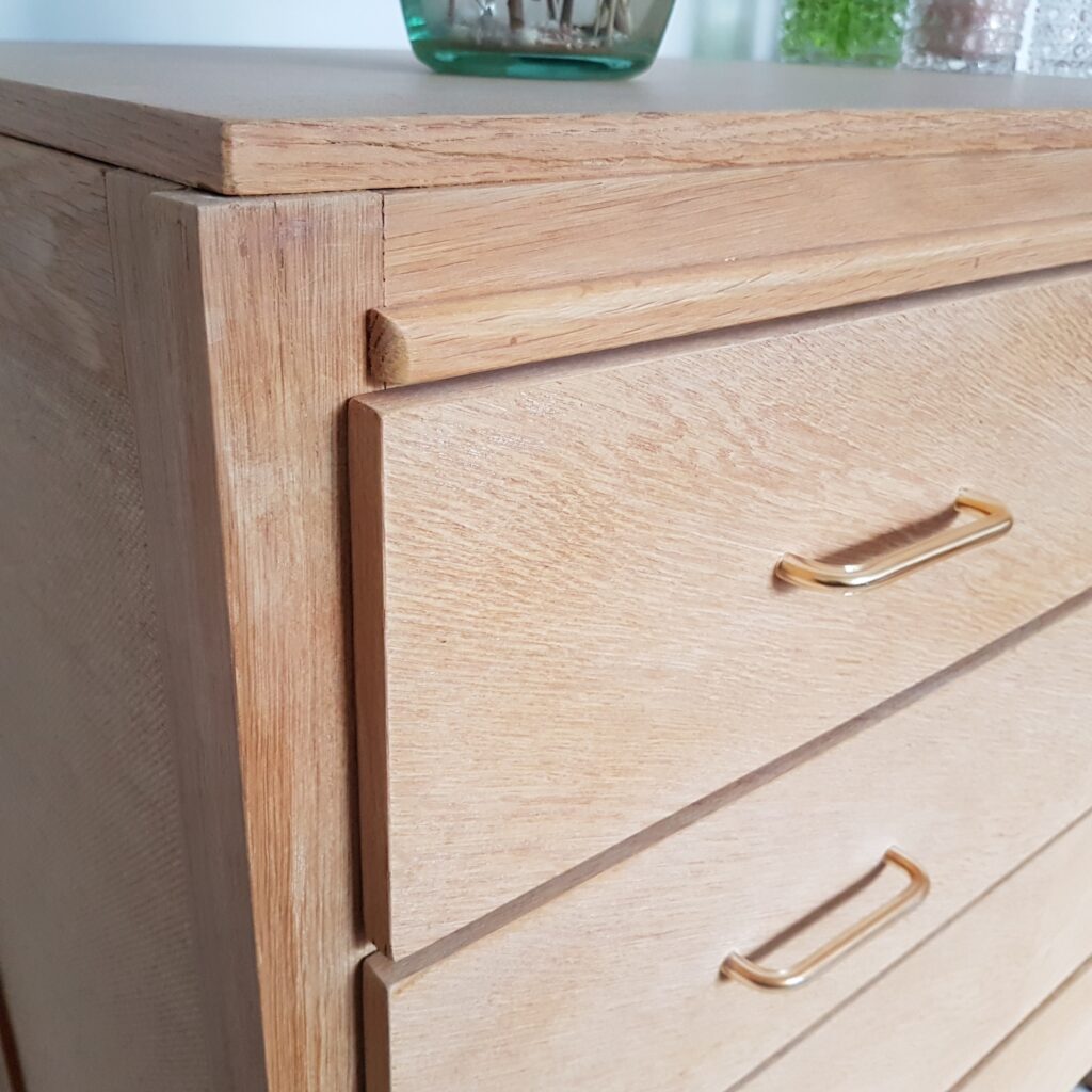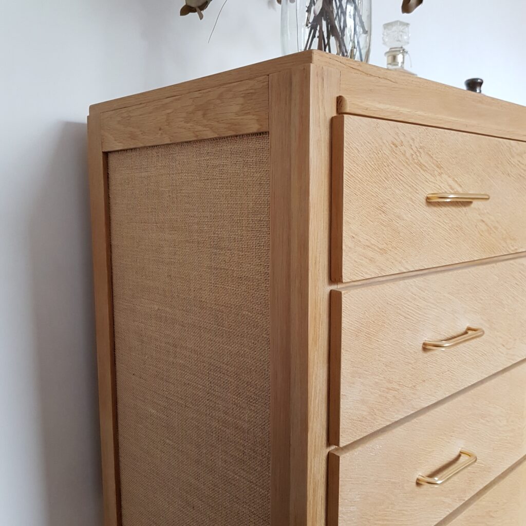 Commode vintage Commode pieds compas années 50 en chêne Commode pieds compas années 50 en chêne Commode vintage en chêne massif naturel et placage de chêne, ouvrant par 4 tiroirs, à l’intérieur desquels il y a de la toile de jute ainsi que sur les côtés du meuble. Pieds compas en chêne massif et placage sur le plateau. Share