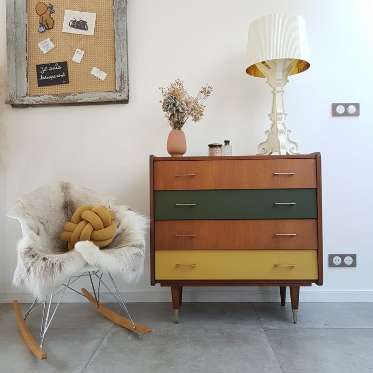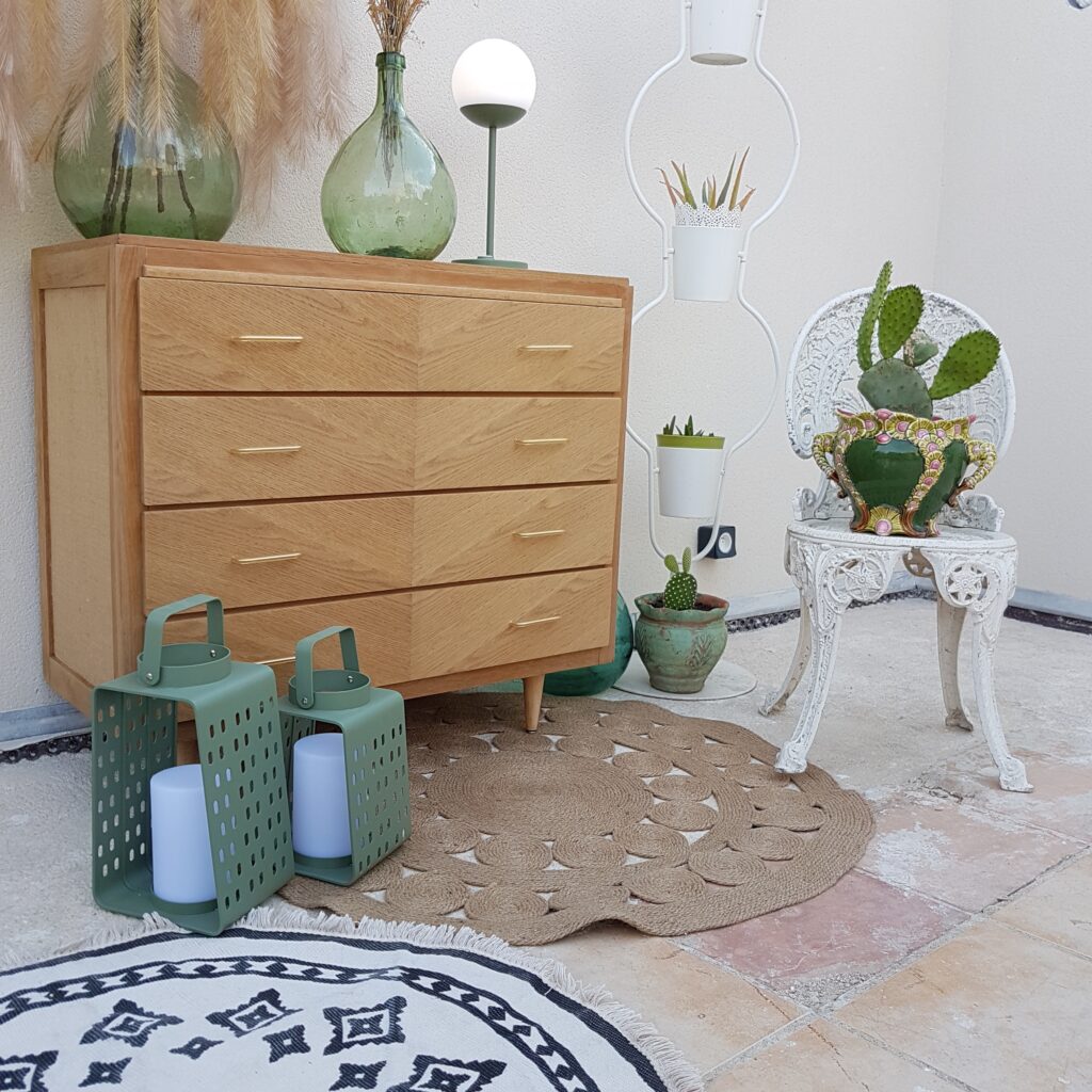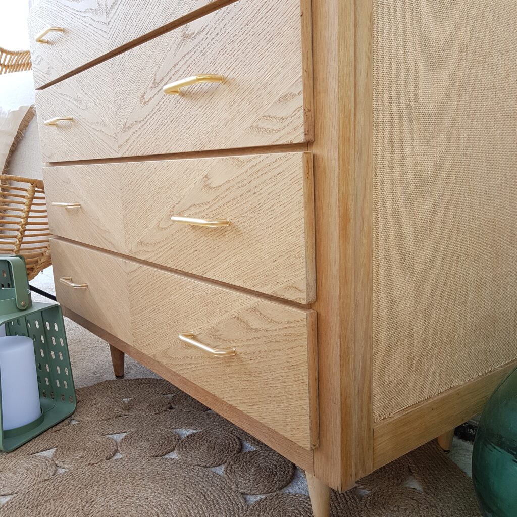 Commode vintage Commode vintage en chêne massif naturel et placage de chêne,… Commode vintage en chêne massif naturel et placage de chêne, ouvrant par 4 tiroirs, à l’intérieur desquels à été posée de la toile de jute. Share
